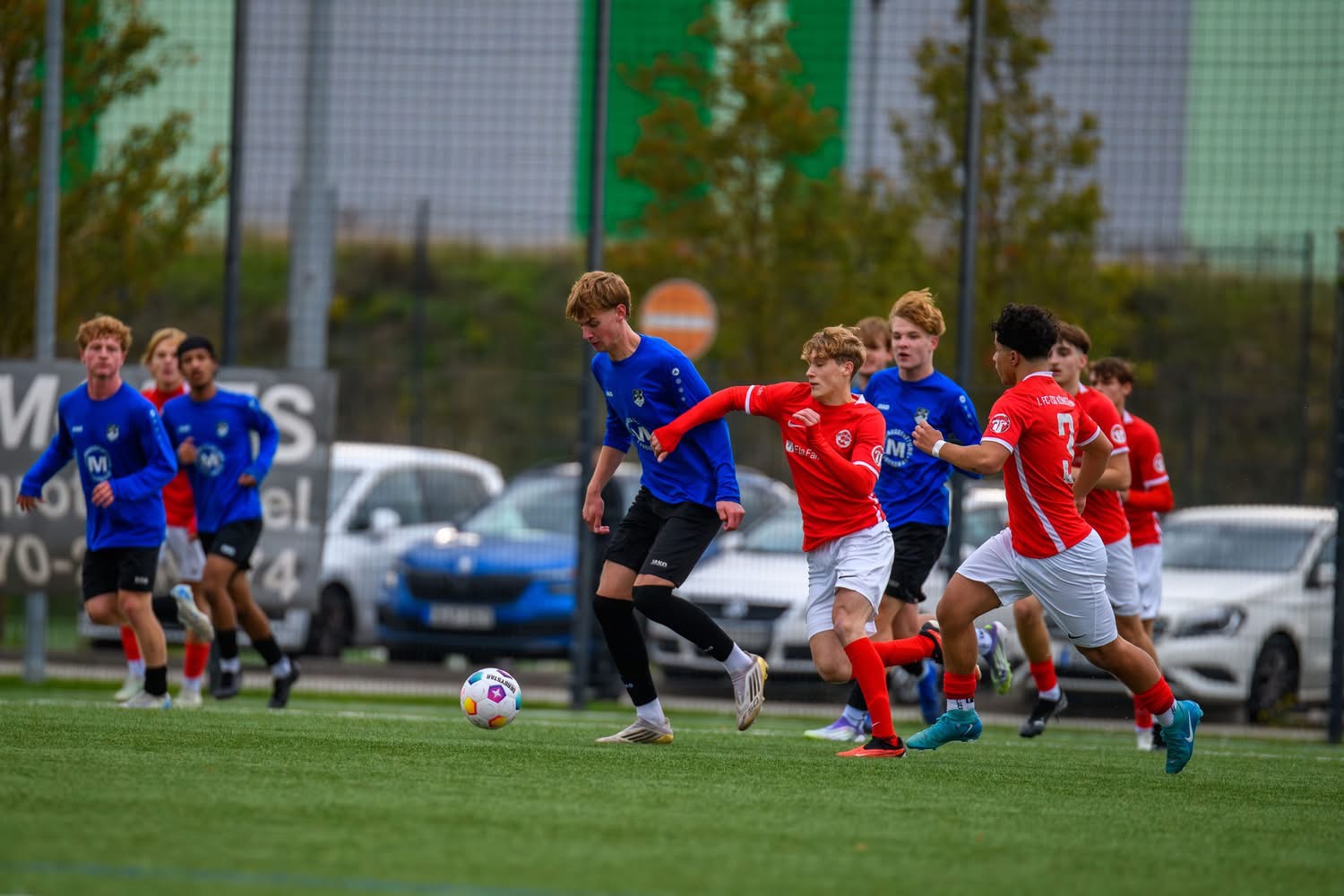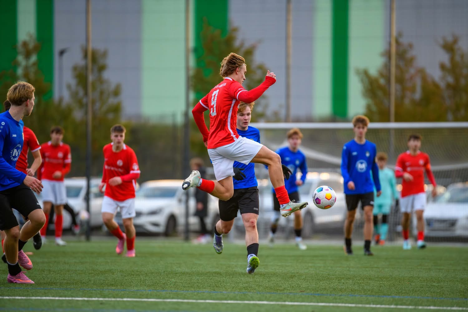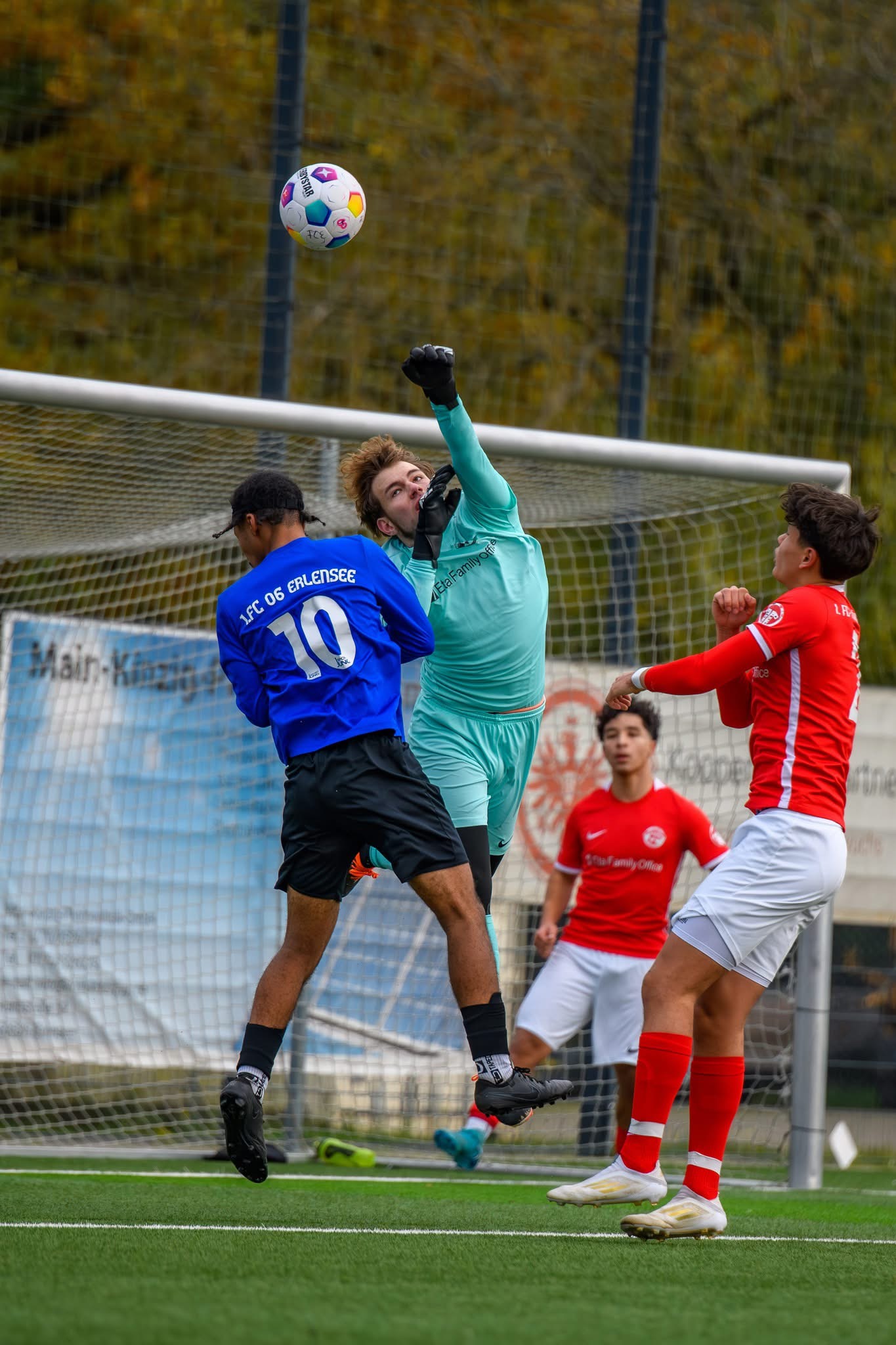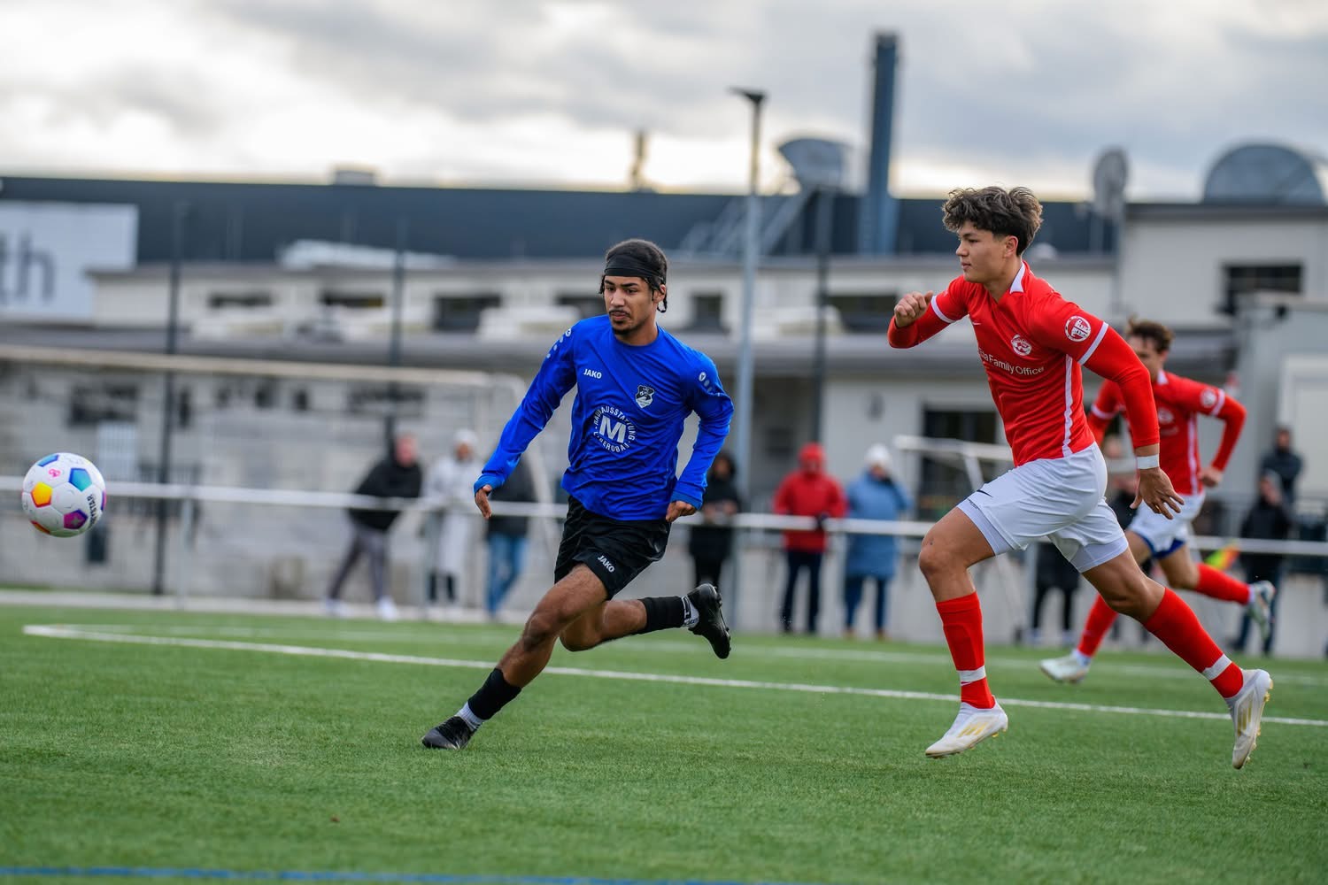 Am Sonntag, den 26.10.2025 empfingen die U 19 Junioren des 1. FC 1906 Erlensee den 1. FC-TSG Königstein, welcher zumindest der Tabelle und den Punkten nach leicht favorisiert ins Spiel ging. Nach Anpfiff der Partie zeigte sich jedoch, dass der 1. FC 1906 Erlensee sich keineswegs von den vorangegangenen Niederlagen abschrecken ließ, sondern vielmehr mit viel Motivation und Druck ins Spiel startete und innerhalb der ersten 10 Spielminuten ein paar Akzente Richtung gegnerisches Tor setzen konnte. Die körperlich überlegenen Gäste aus Königstein schafften es jedoch, das Spiel im weiteren Verlauf zu ihrem Spiel zu machen, so dass diese in der 27. Spielminute durch einen individuellen Fehler quasi aus dem Nichts die 1:0 Führung für sich verbuchen konnten. Mit diesem Spielergebnis ging es für beide Teams in die Pause.