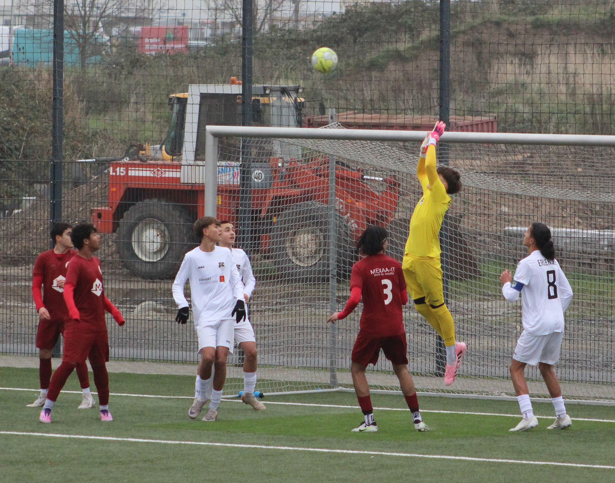 Die jungen Raben übernahmen von Beginn an die Spielkontrolle und trafen früh in der 7. Minute durch einen direkt verwandelten Eckball von Burak. Kurz danach in der 11. Minute kamen RW Frankfurt zu ihrer ersten Chance durch einen Freistoß, der knapp am Tor vorbei ging. In der 16. Minute aber dann das 2:0 für Erlensee. Burak eroberte nach starkem Pressing den Ball, spielte den gegnerischen Innenverteidiger aus und schloss flach ins Eck ab. Das 3:0 für die Jungs von Tobias Heilmann resultierte in der 22. Minute wiederum aus einem Standard. Alessios Freistoß aus dem Halbfeld kam hoch auf das Tor der Frankfurter und flog, abgefälscht durch einen Gegenspieler, unhaltbar ins Tor. In der 33. Minute dann ein sehr gut ausgespielter Konter von den Gästen, aber Erlensees Torwart Tobias hielt den Ball stark. Eine Minute später dann doch das Anschlusstor für Frankfurt. Der Erlenseer Torhüter kann den Ball nach einem Fernschuss noch zur Seite abwehren, gegen den Nachschuss aus kurzer Distanz ist er dann aber machtlos.
